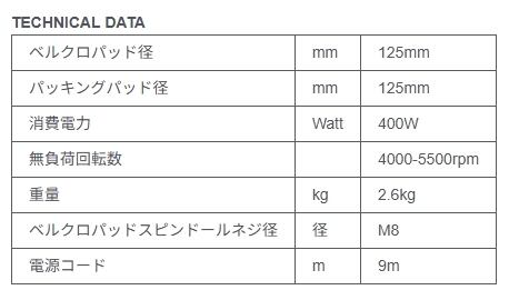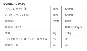 12mmのオービット径、Φ125mmのベルクロパッド、Φ150mmのウレタンバフによりサンディング、仕上げ作業の両立が可能です。